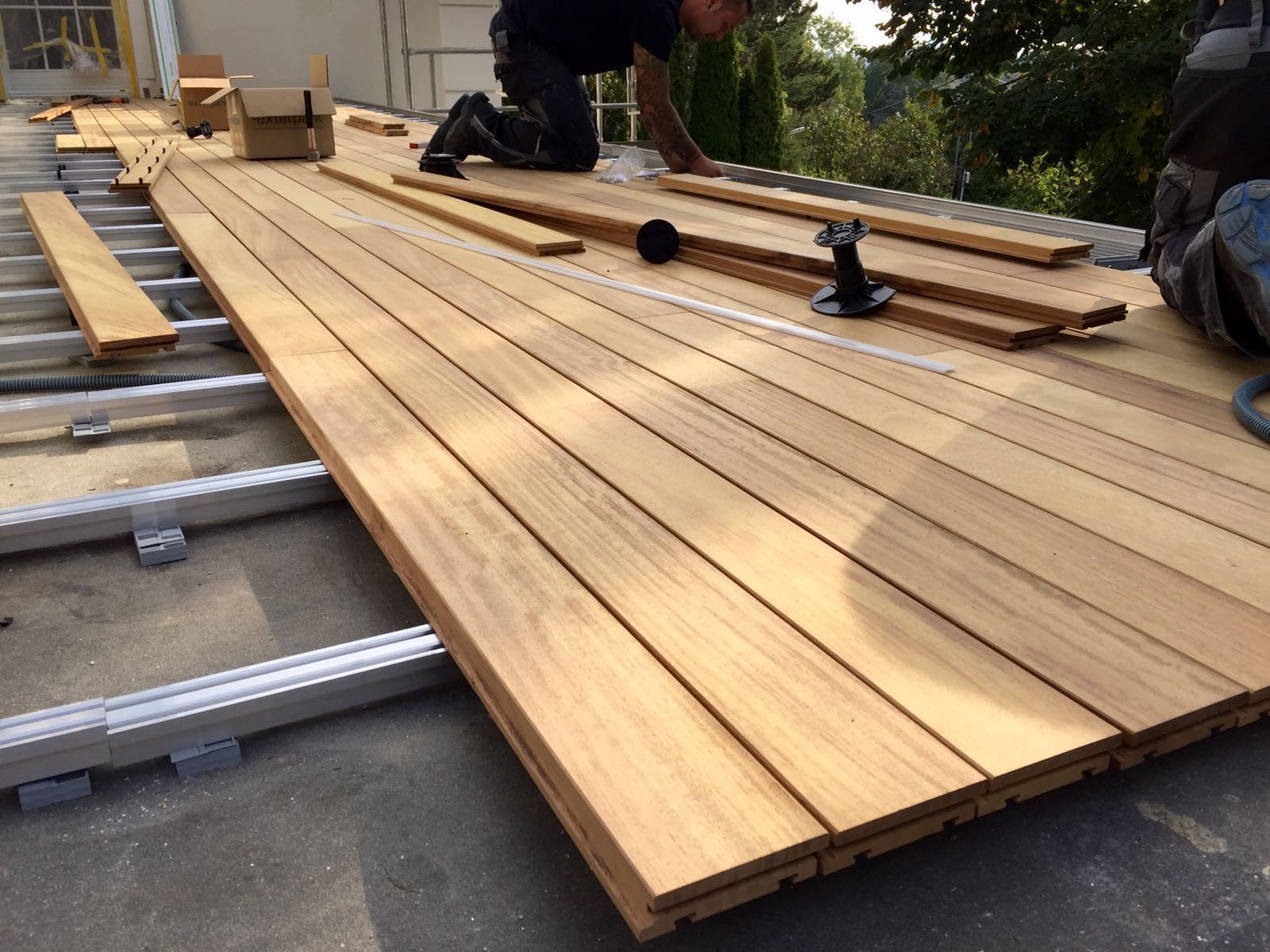 Bij de installatie van een hardhouten buitenparket wordt het best een hardhouten regel toegepast.